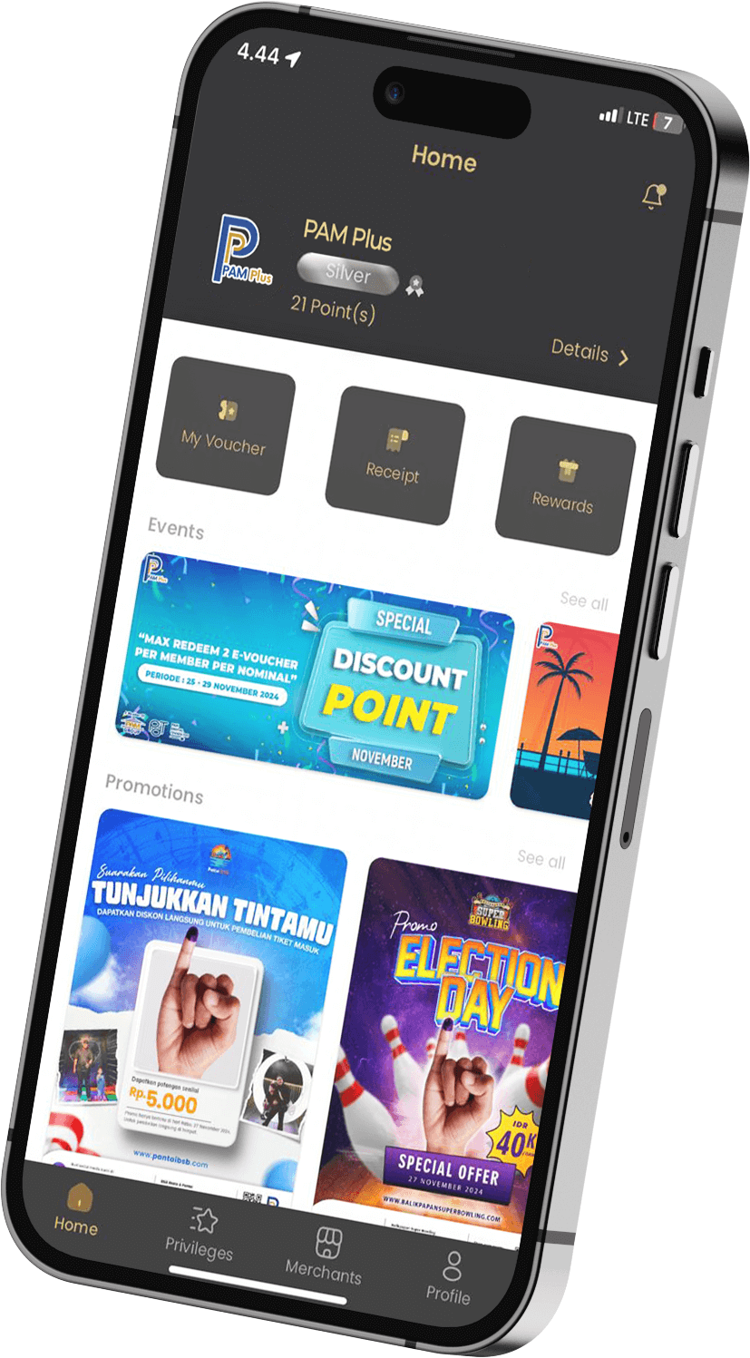 Unleash the power of perks with PAM Plus, your ultimate loyalty companion powered by PT.PAM Digital Teknologi! Elevate your experience at Balikpapan Superblock, Nusantara Superblock, Grand Jatra Hotel, and more. Download now to effortlessly unlock a world of exclusive benefits and seamless access. Your journey to unparalleled rewards begins with a simple click – embrace the extraordinary with PAM Plus!"